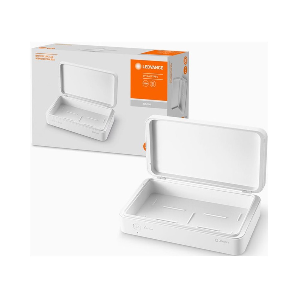 Sterilizačný box Ledvance UVC ponúka možnosť efektívnej sterilizácie vášho smartfónu alebo iných predmetov vo vašej domácnosti, či kancelárii. Sterilizácia prebieha na základe technológie LED UV-C bez chemikálií, ktoré by mohli tieto predmety poškodiť. Sterilizácia má dva režimy - režim na hladký povrch a režim na drsný povrch. Box je kompaktných rozmerov a vďaka výkonnej nabíjateľnej batérii ho môžete použiť kdekoľvek potrebujete. Čas nabíjania batérie je 1 h. Pre ochranu vašich očí a pokožky je box zabezpečený mechanizmom automatického vypnutia, ktoré sa aktivuje pri jeho otvorení. Napätie 5 V. Typ pripojenia USB. Ochrana IP20.