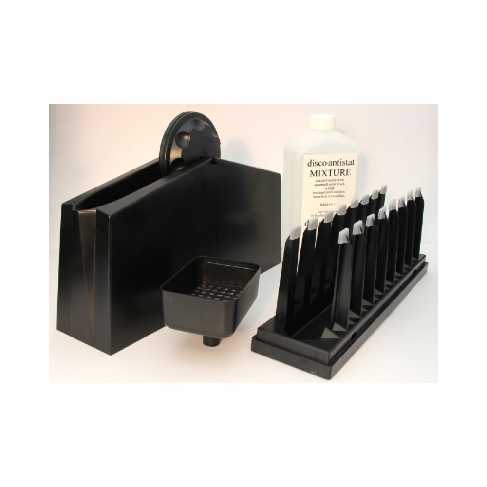 - Hĺbkové čistenie – odstraňuje prach, mastnotu, odtlačky prstov aj staré nečistoty z drážok (alkohol-free kvapalina Disco-Antistat Mixture 1 l v balení, bez poškodenia vinylu).
