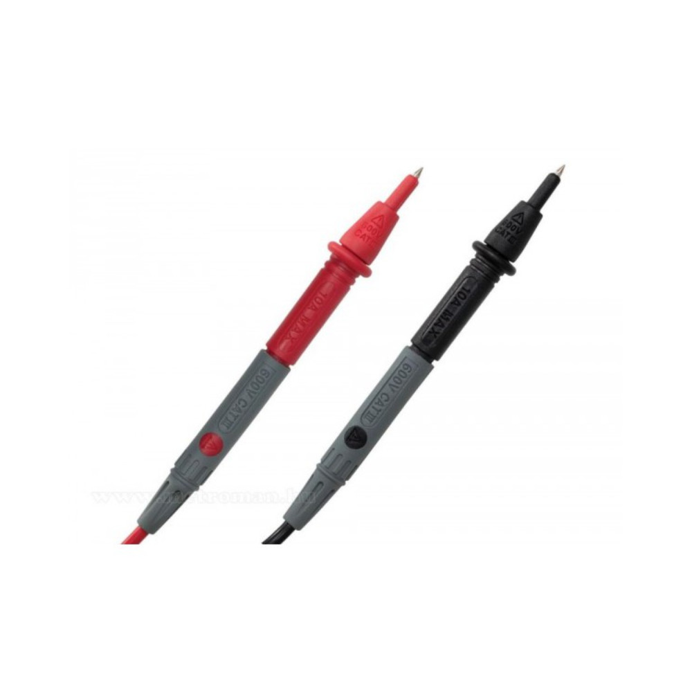 • kombinované hroty s odstrániteľnými izolačnými krytmi<br>• odstrániteľné izolačné kryty na lomených banánikových vidliciach (∅4 mm)<br>• ~120 mm rukoväť / 2 mm priemer hrotu<br>• 600 V CAT II / 600 V CAT III<br>• 10 A max. zaťažiteľnosť<br>• ~ 90 cm dlhý 22AWG kábel