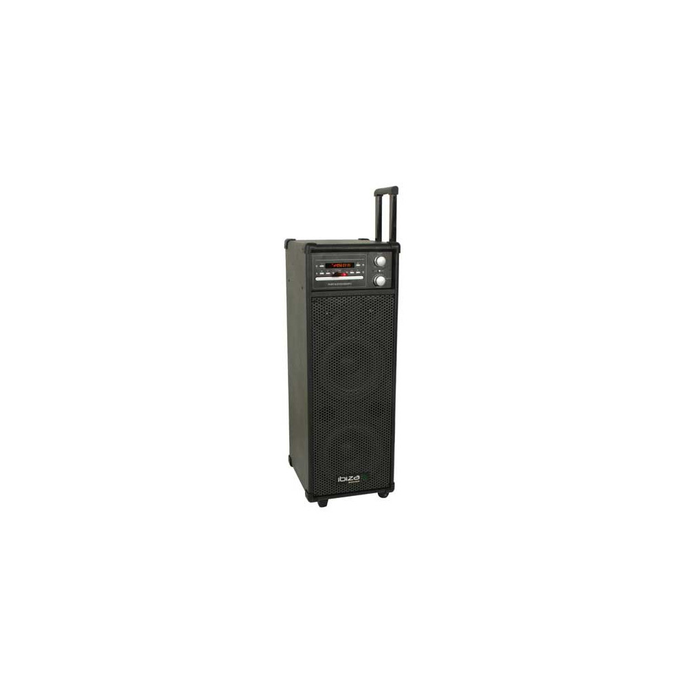 Prenosný karaoke mixpult / PA systém IBIZA PORT8CD-VHF s 8" reproduktorom, výkonom 100 W max (bi-amp), vstavaným CD/USB/MP3 prehrávačom, FM tunerom, VHF bezdrôtovým mikrofónom, echo efektom a batériou. Ideálny na malé párty, karaoke večery, svadby, animácie alebo mobilné ozvučenie – všetko v jednom kompaktnom kufríku s rukoväťou a batériou pre slobodu pohybu!