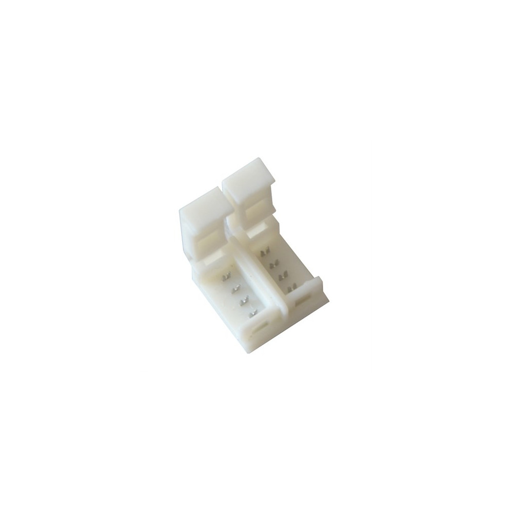 Napájacia spojka pre RGB LED pásky 5050 o šírke 10mm s IP65. Spojka slúži na prepojenie viacerých pásikov v sérii bez nutnosti spájkovania. Do konektora sa jednoducho nastrčí LED pásik tak, aby spájkovacie kontakty na pásku smerovali proti kovovým kontaktom v plaste a konektor uzavrieme.