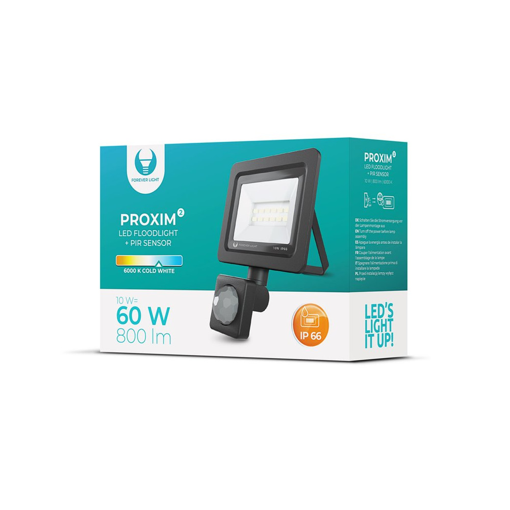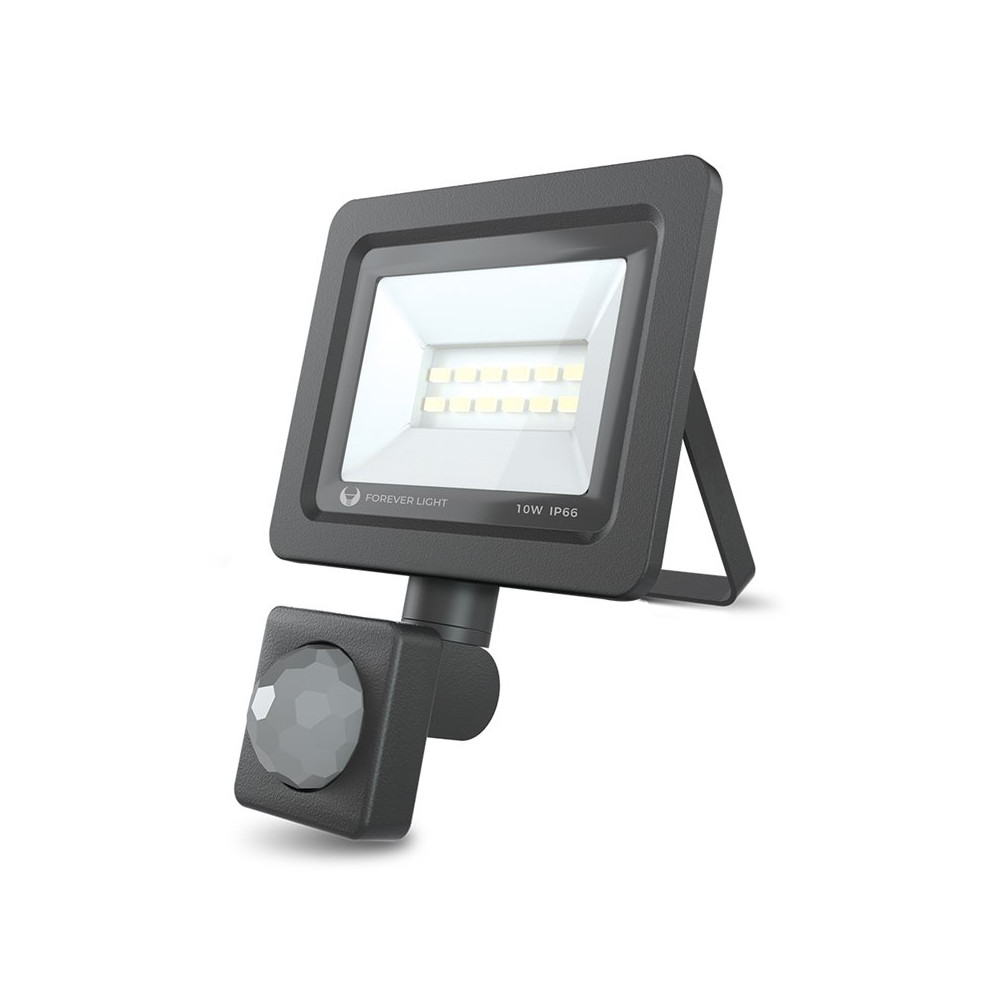 Reflektor LED 10W+PIR CW šedý, čierny