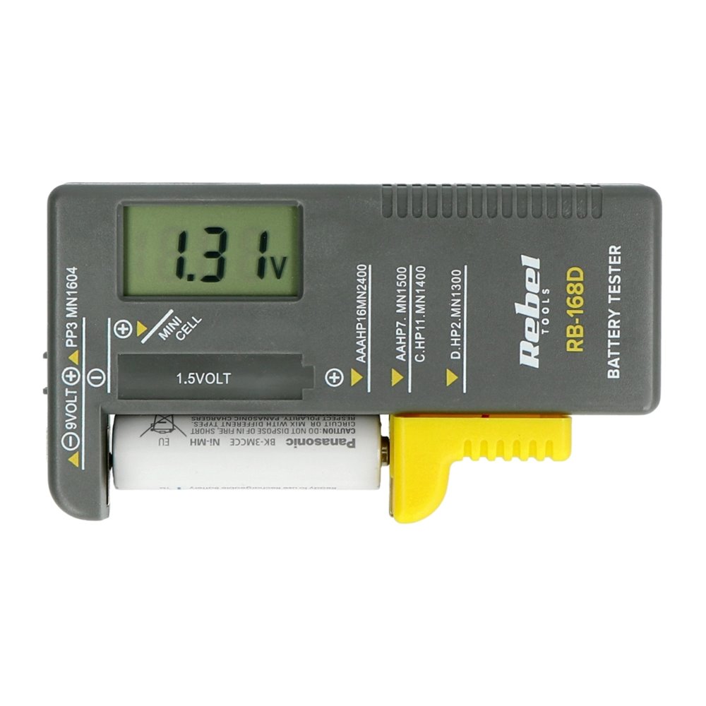 Typy meraných batérií: 9 V, gombíkové, AAA, AA, C, D