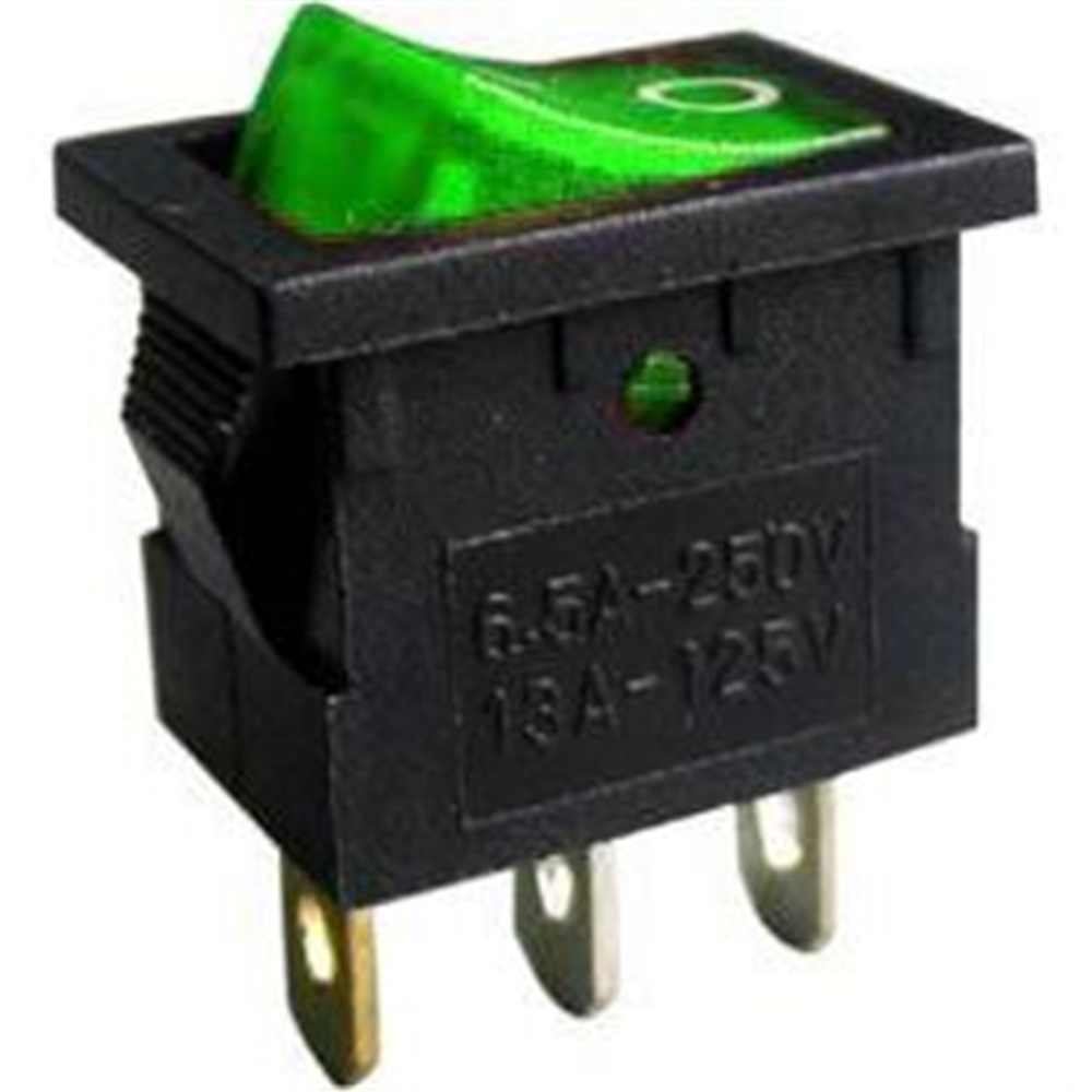 Vypínač kolískový MIRS-101, OFF-ON 1pol.250V/3A, zelený, presvetlený