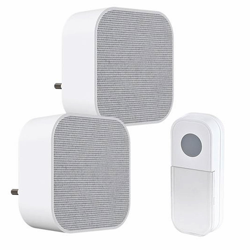 2x bezdrôtový zvonček, do zásuvky - dosah: 180m • biely • LED indikácia zvonenia na zvončeku aj tlačidle • 1x tlačidlo s menovkou • nastavenie hlasitosti • funkcia Learning code • napájanie: tlačidlo: CR2032 batéria (pribalená), zvonček: AC 230V (do zásuvky)